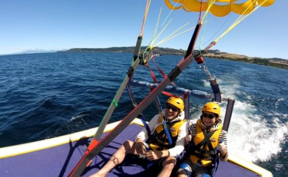 Parasailing über dem Lake Taupo