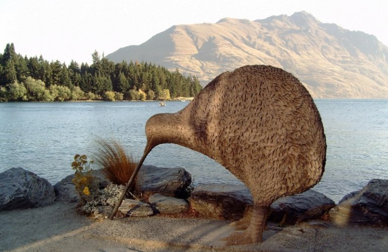 - Der Vogel, das National-Symbol Neuseelands, ein flugunfähiger und nachtaktiver Vogel, der mittlerweile relativ selten ist und deshalb in Neuseeland besondern Schutz genießt: