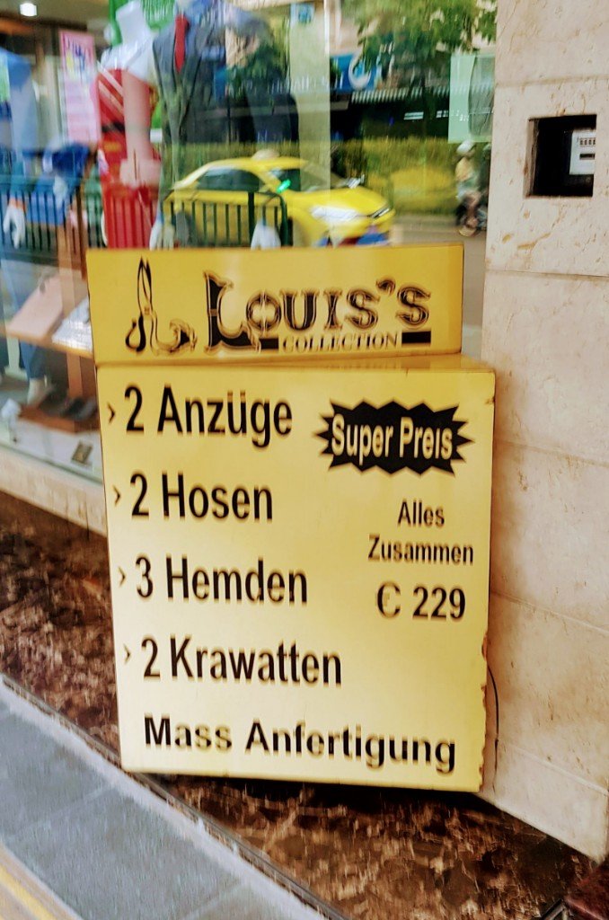 Weniger weil dieser Herrenschneider seine Ware in geschliffenem Deutsch anbot, sondern der Gesichtsausdruck mit dem der Inhaber Mike vor der Tür ansprach.