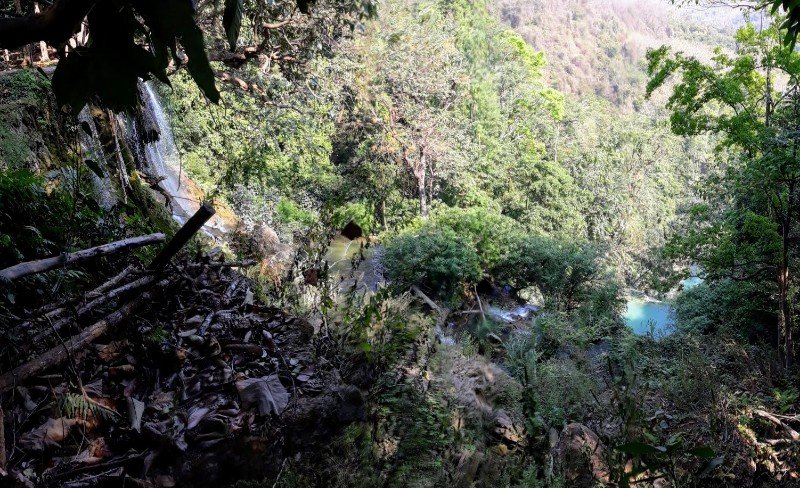 Der Weg vom Parkplatz führt zunächst über das Bear-Rescue-Centre, einem großen 'Spielplatz' für asiatische Schwarzbären zu den eigentlichen Wasserfällen, die in mehreren Kaskaden aus insgesamt rund 60 Metern Höhe herabstürzen.