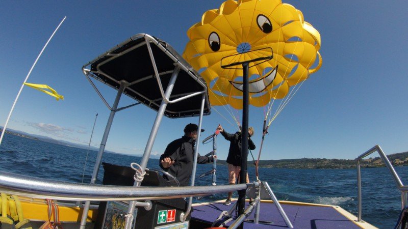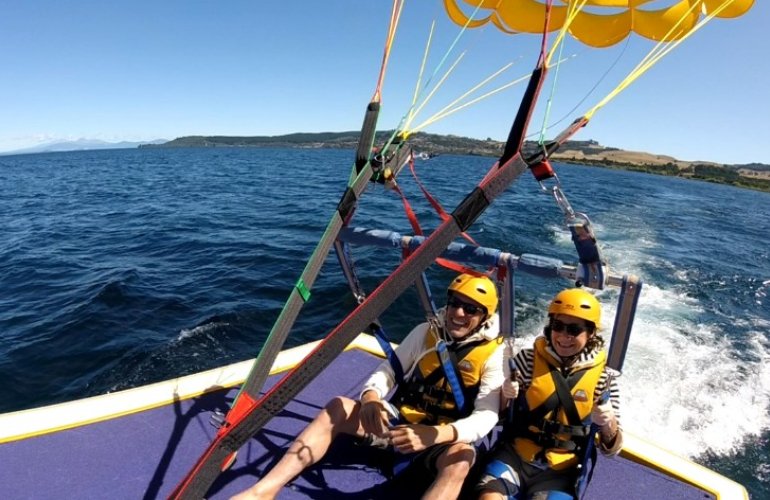 Parasailing über dem Lake Taupo