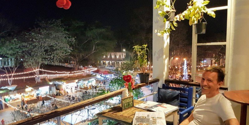 Valentinstag in Luang Prabangs wahrscheinlich einziger Rooftop Bar direkt am Eingang zum Night-Market. Sehr schön ...