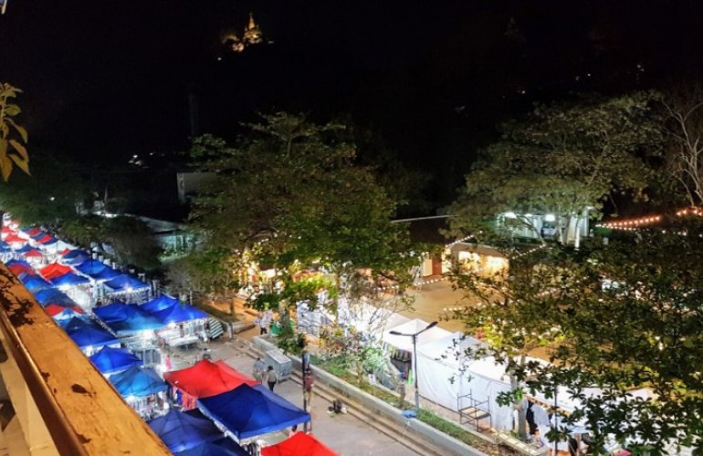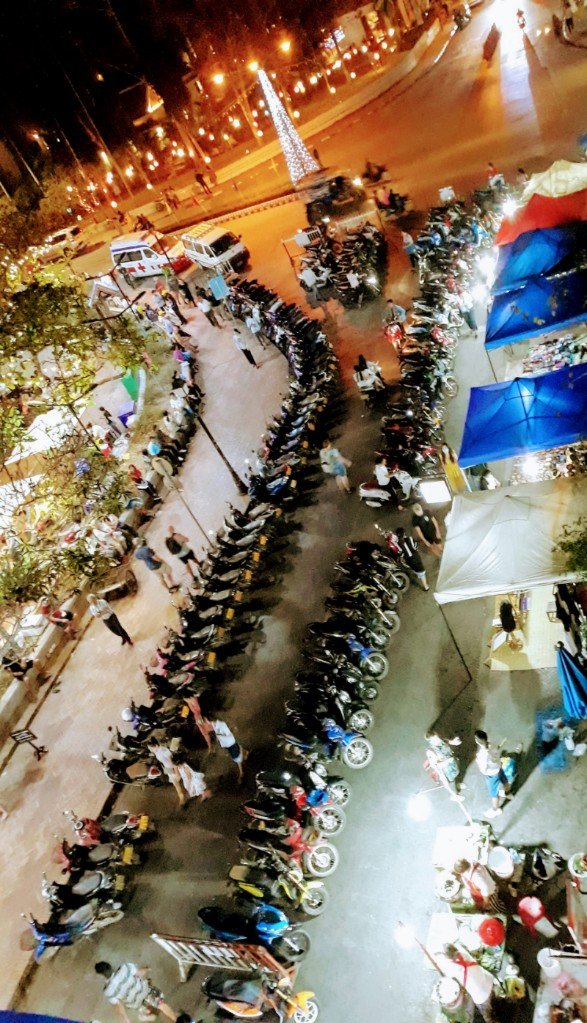 Und eine geile Aussicht auf den Nachtmarkt und die ganzen in Reih und Glied davor geparkten Mopeds ...