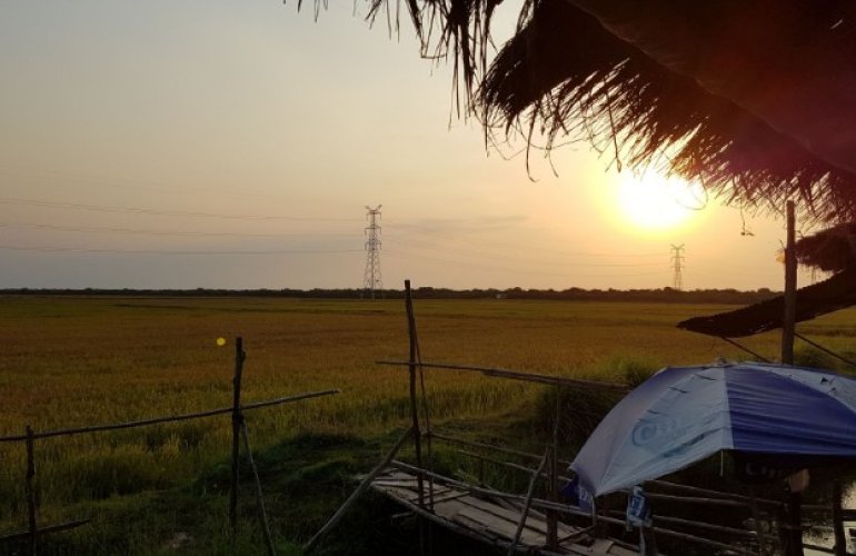 Sonnenuntergang in den Reisfeldern hinter Siem Riep