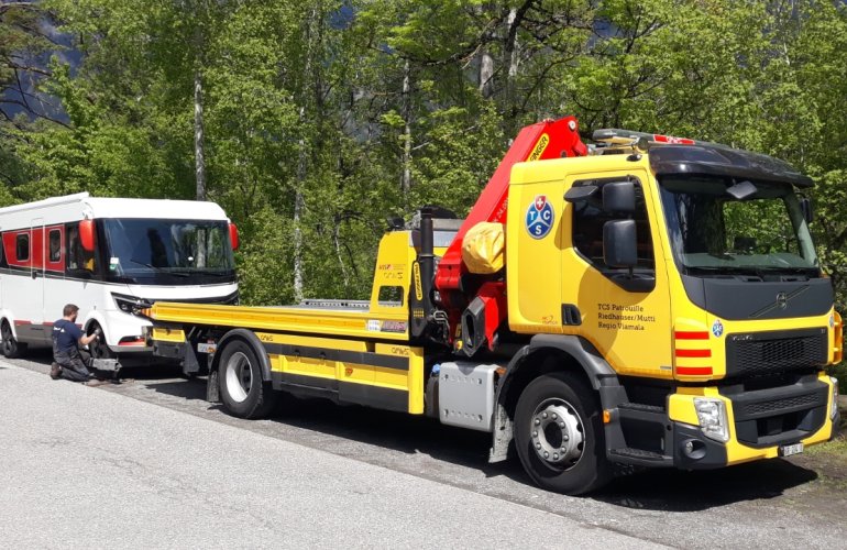 Da eine Reparatur in Thusis nicht möglich ist, sollen wir zu einer 'FIAT Professional' Werkstatt in die nächstgrössere Stadt - nach Chur - weitergeschleppt werden.